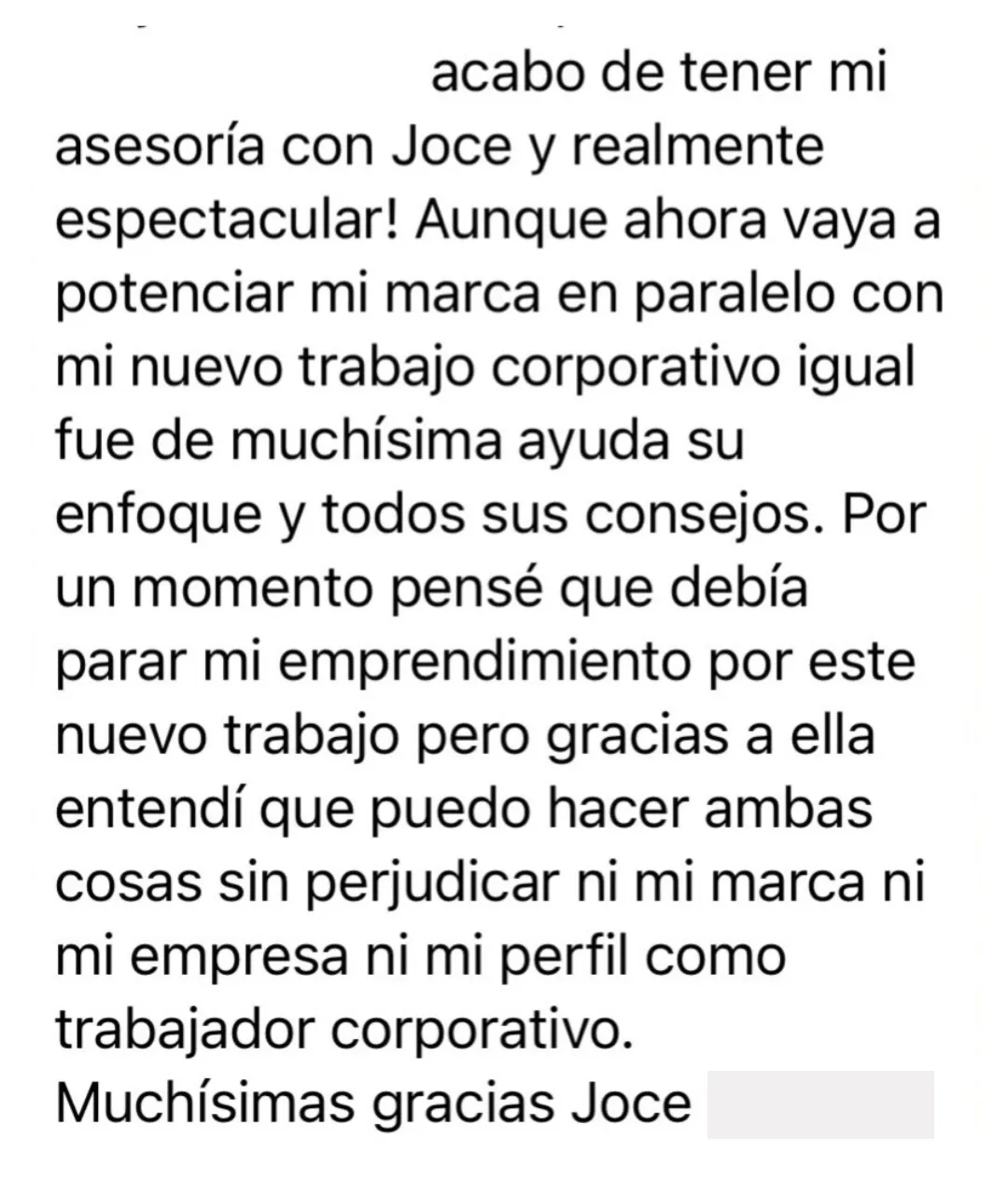 Actualmente, Joce acompaña a terapeutas, coaches, mentoras, educadoras y consultoras a desarrollar marcas personales auténticas, diseñar experiencias de alto valor e implementar sistemas de atracción de clientes comprometidos, desde un enfoque consciente, estratégico y sostenible.